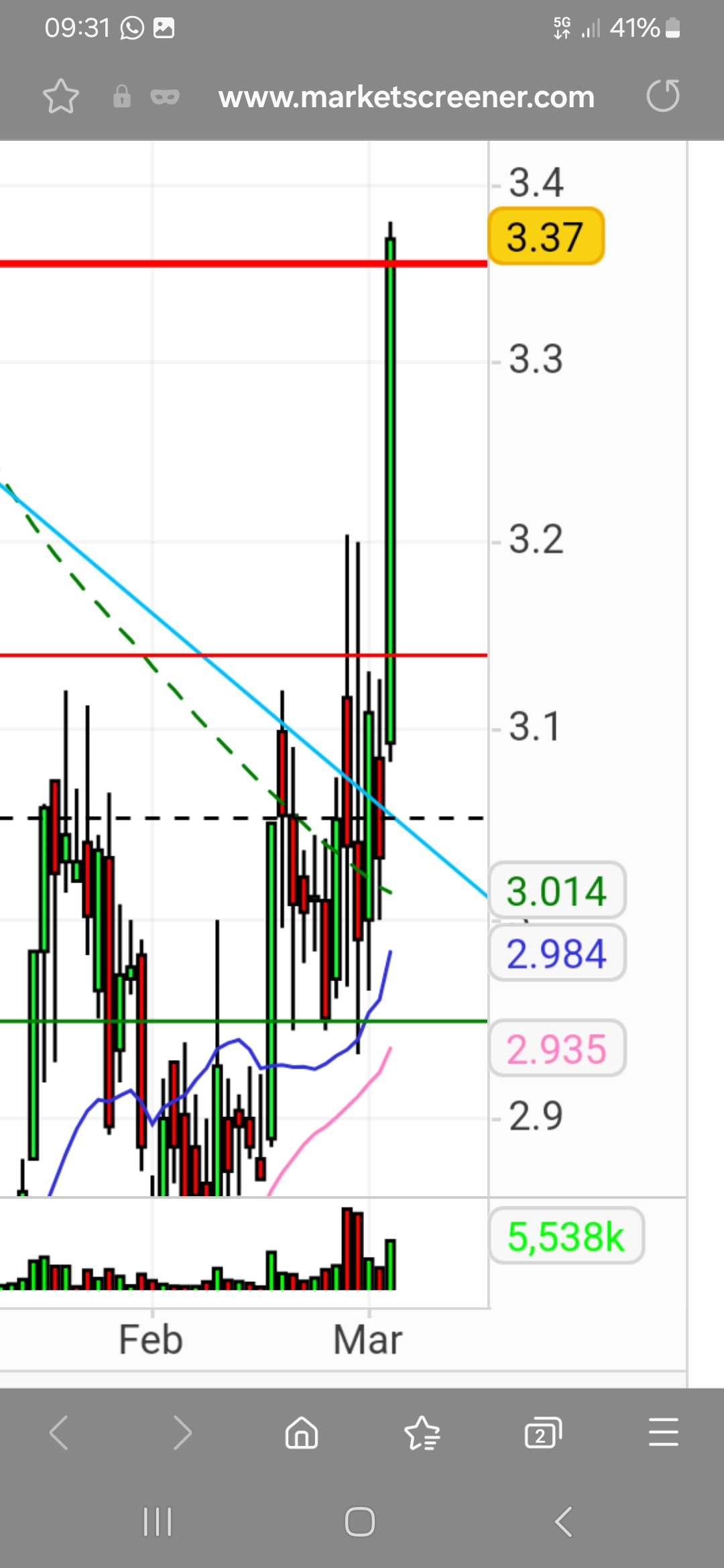 em 2 dias faz 16M acoes, os curtos não anunciam fecho posição, e o papel não aguenta acima dos 3 !!