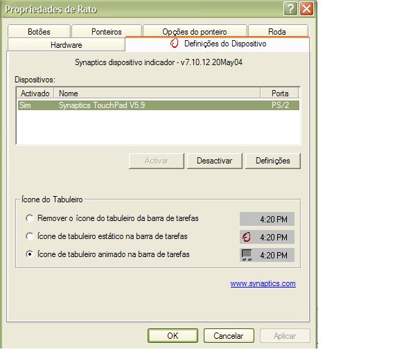 e na tab Hardware, ao seleccionar o Synaptics touchpad ele dis q está a funcionar correctamente?