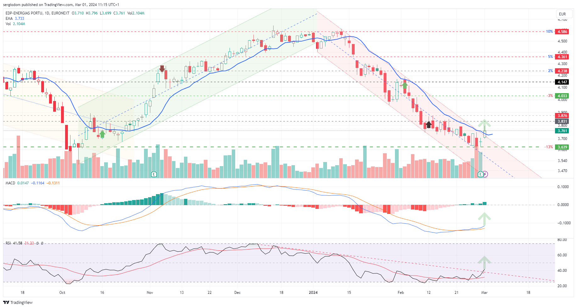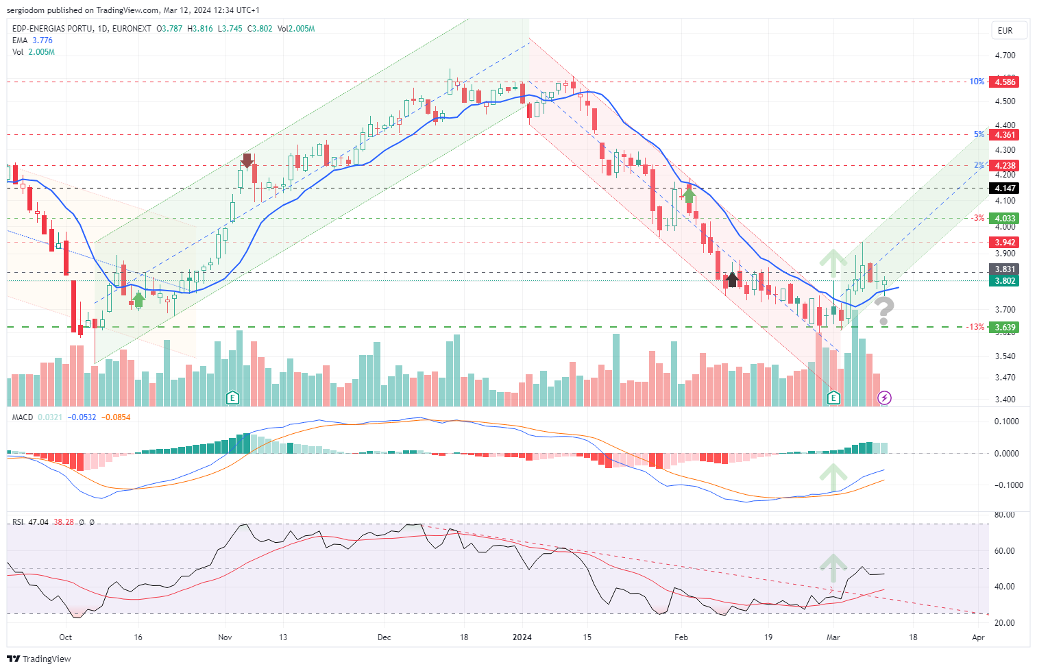 parece-me o mesmo. ainda sendo cedo para estar a definir um canal ascendente, os proximos dias são para acompanhar a inversao do MACD e provavelmente definir o segundo ponto da nova LTA. boneco na escala diária.