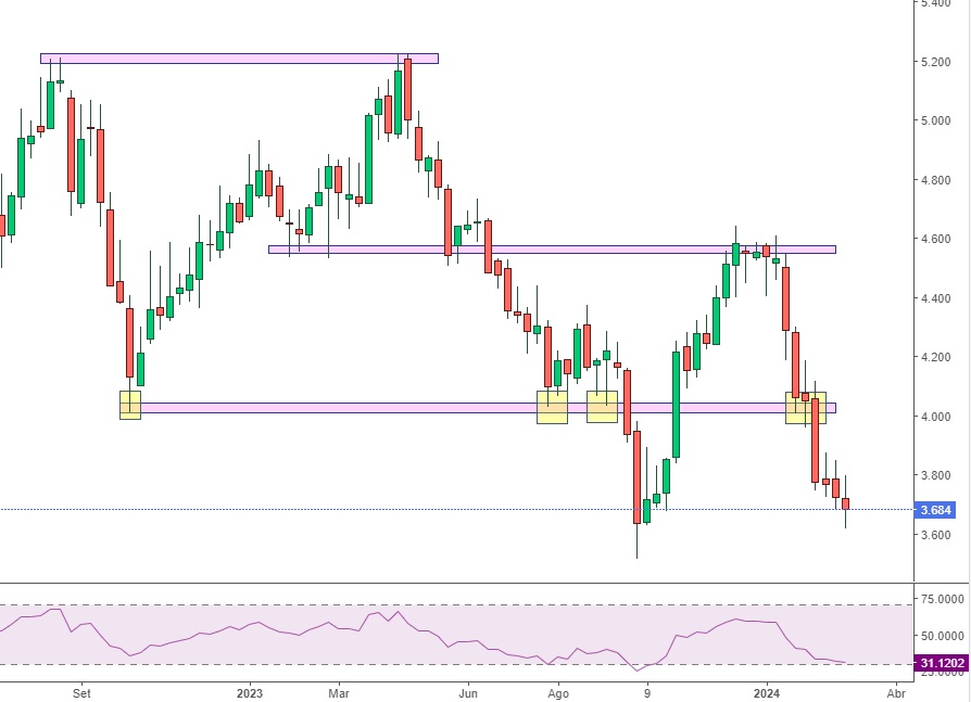 Já fico feliz se não quebrar em baixa o suporte dos 3,60 mais ou menos pois está imprópria para cardiacos.