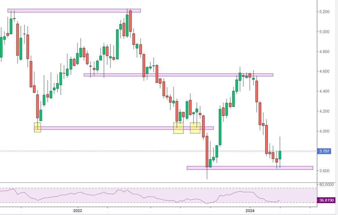 se isso acontecer, temos fortes possibilidades de uma subida consistente até aos 4.59.