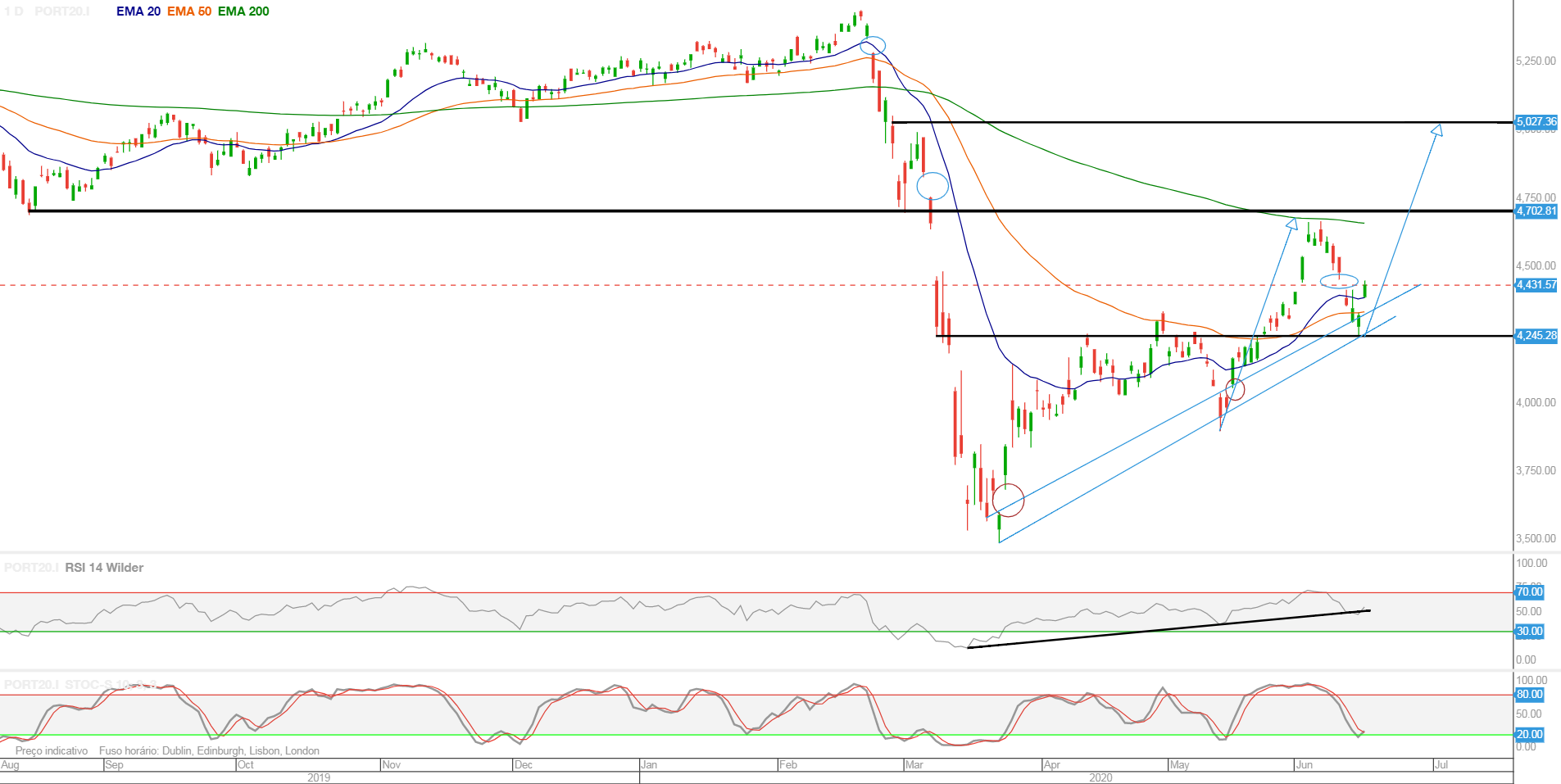 Deixo o gráfico actualizado do PSI que continua a sua correcção das últimas 2 semanas e tenta aguentar-se na zona dos suporte dos 4300 pontos.