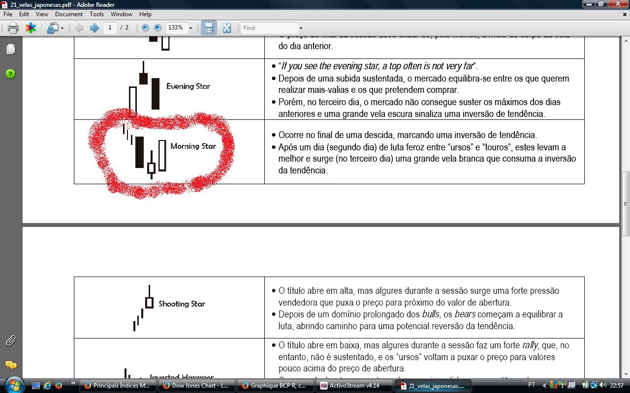 Luís a 2° vela não se adequa ao morning star (infelizmente), por isso é muito importante encontrar sinais claros de inversão, e não tentar ver o que queremos que o BCP faça.