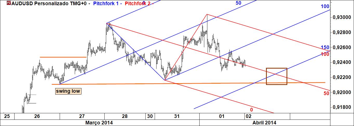 a linha de aviso do fork azul e linha média do fork vermelho, conjugados com uma linha multipivot construída a partir do swing low, poderão servir de referência para uma compra (como se havia referido)