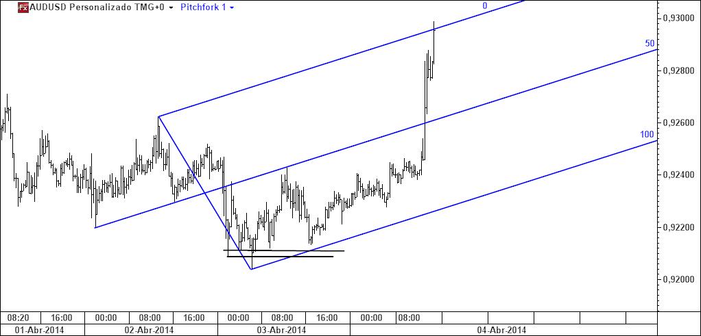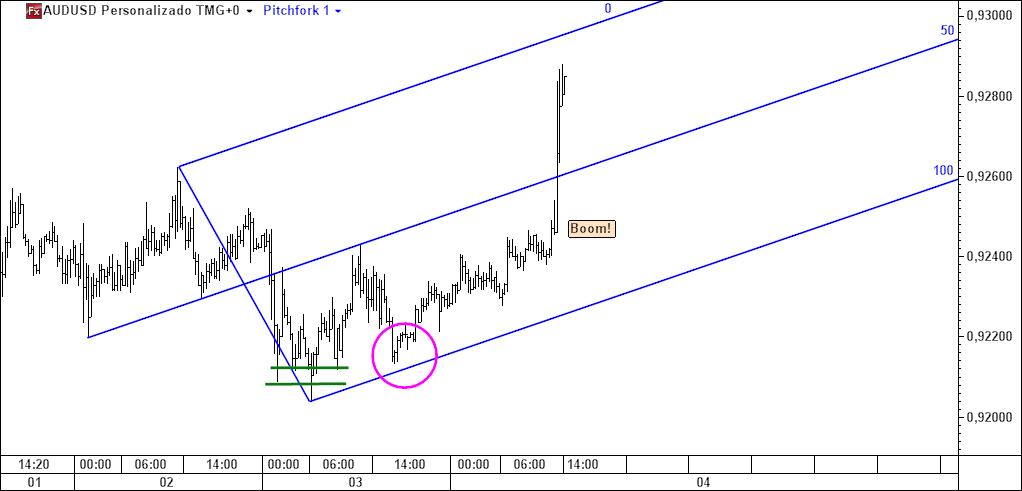 quem quisesse usar a forquilha teria identificado a median line como local objectivo para colocar o target, tal como se pode ver no gráfico seguinte