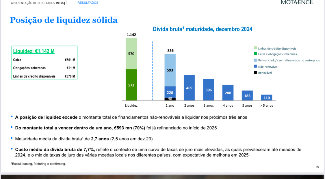 Em parte isto é explicado pelos juros ainda elevados que a Mota pagou o ano passado (7.7%) em princípio isto melhorará para o ano com a descida das taxas de juro.