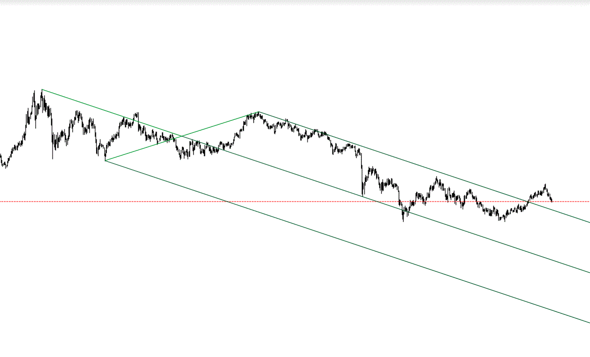 o que fazer se as cotações continuarem por aí acima e forem bater na linha superior do Pitchfork, vendemos à espera dos preços retornarem à Linha Média? Mas se for este o caso uma posição de venda não contraria o sentido da trend dominante?