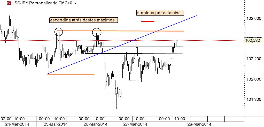 no usdjpy a stop teria sido colocada no lugar que agora mostro (1.º gráfico), sendo que conto o seu valor a partir do preço de entrada do mercado e não a partir da estrutura por que me oriento (anterior máximo, anterior coil, etc.)