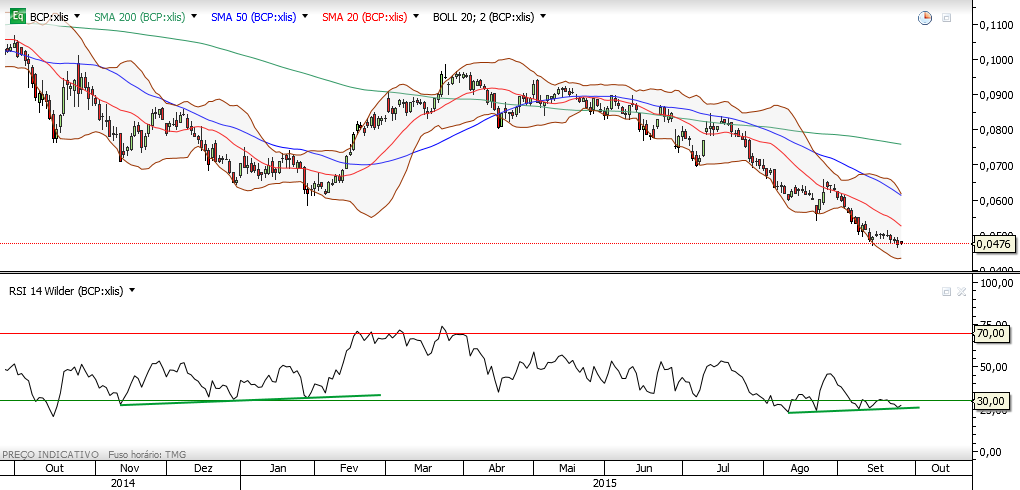 A divergência não leva à subida dos preços, a divergência é um indicador técnico positivo para o título, mas há muitos indicadores técnicos, raramente todos indicam o mesmo sentido. Se reparares essa divergência já existia em meados de agosto e inícios de setembro e isso não impediu o BCP de continuar a cair... discordar de ti não é dar-te na cabeça, eu discordo de ti da mesma forma que tu discordas de mim, pelo teu raciocínio também me estás a dar na cabeça!
