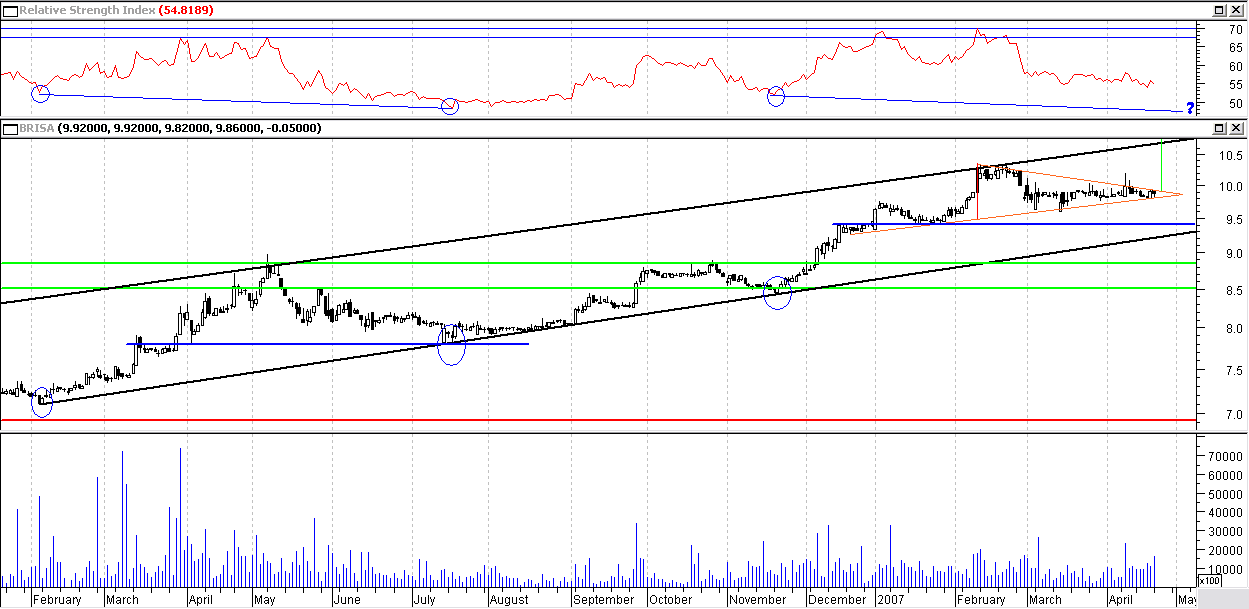 Aparentemente, parece estar a formar um triângulo, em que uma vez quebrado em alta, levará o titulo para muito perto dos 10,80 (topo do "canal")...