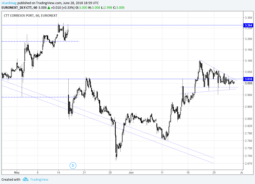 Dou quase sempre um desconto, para casos graves desconto tudo. A propósito dos CTT temos então aquela resistênciazinha chata em 3.03, mas que até pode cair no fecho. Veremos.