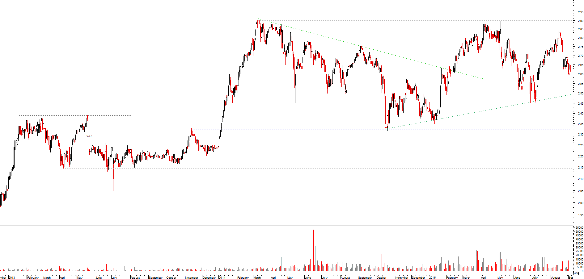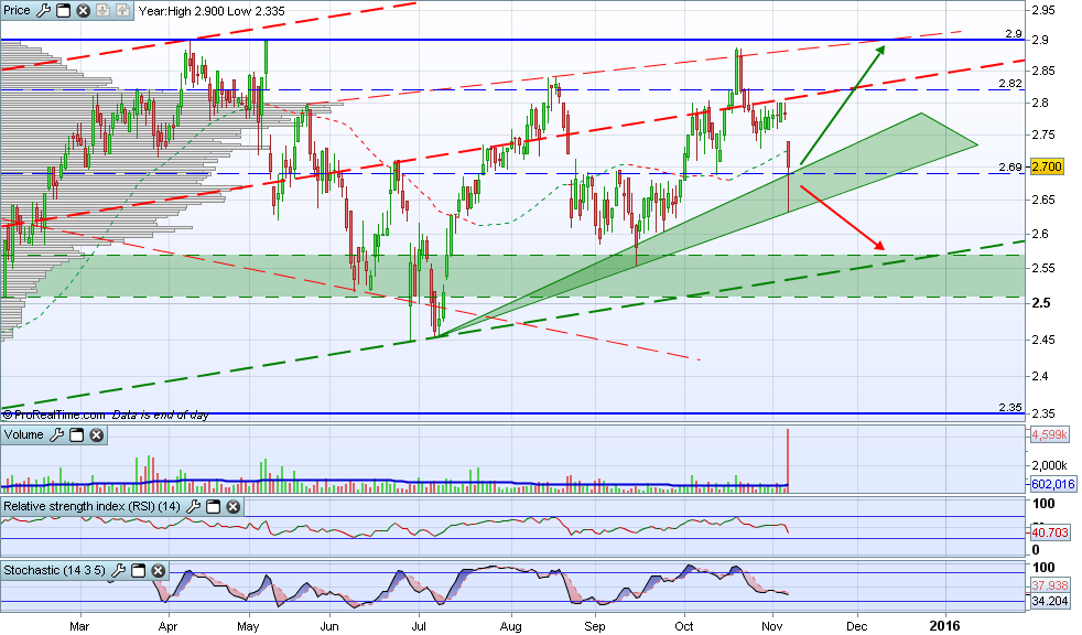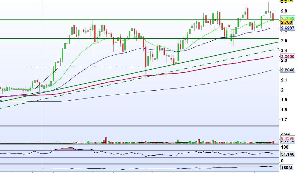 num gráfico semanal vemos o preço a oscilar ali entre os 2,86 e a mm200; suponho que ficará por aqui até ao final do ano.