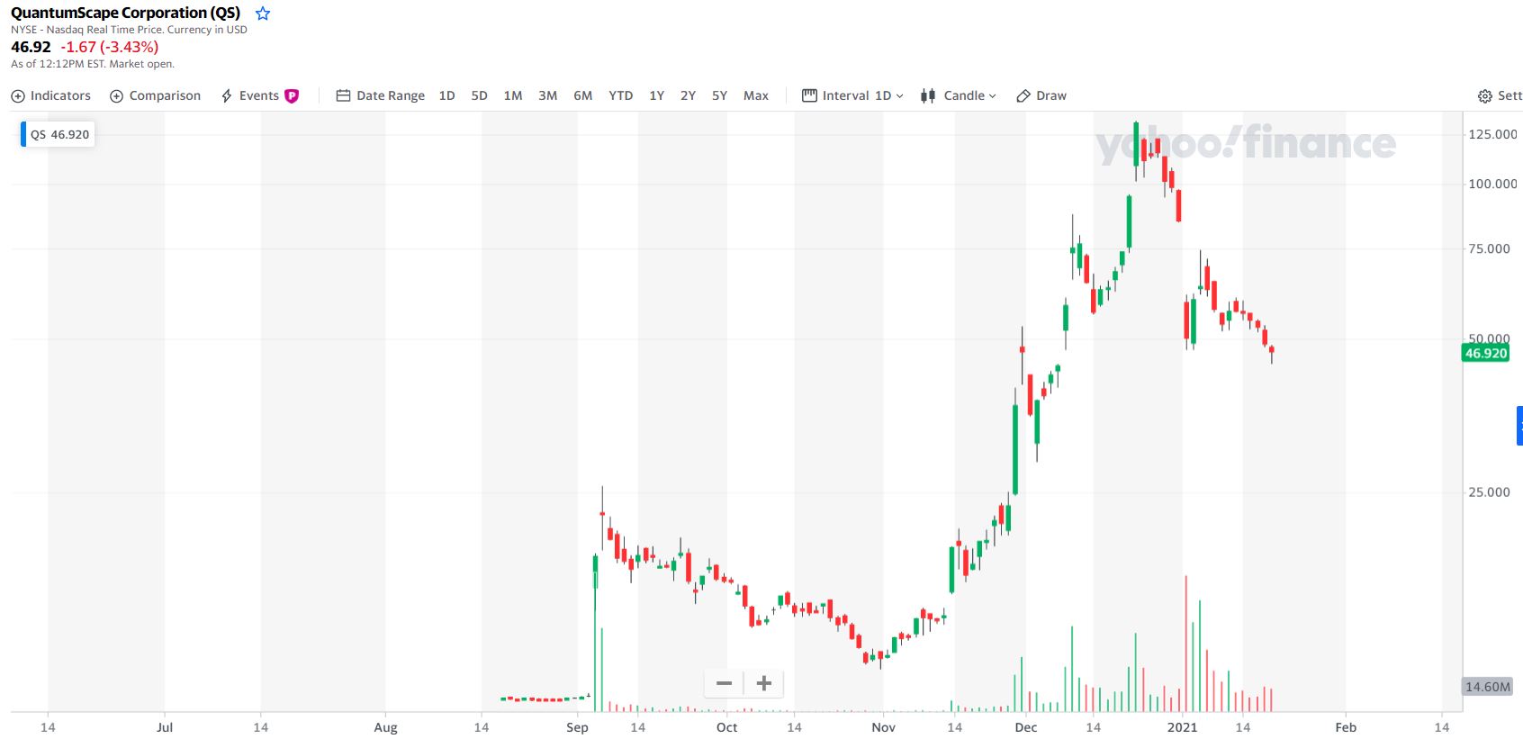 A Quantumscape fechou o GAP que tinha nos 44,55€ e inverteu a rumo para Norte anulando praticamente as quedas de hoje de quase 6% vamos ver se é para manter ou continuar as quedas .