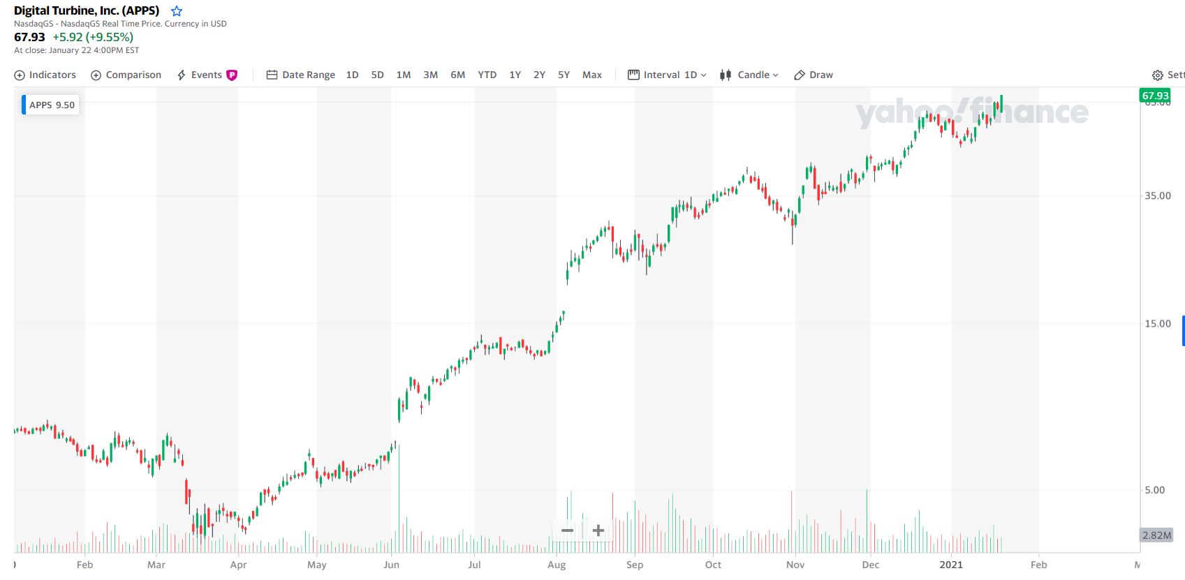 A APPS (Digital Turbine) tem um gráfico perto da perfeição, é o "buy and hold it" perfeito.