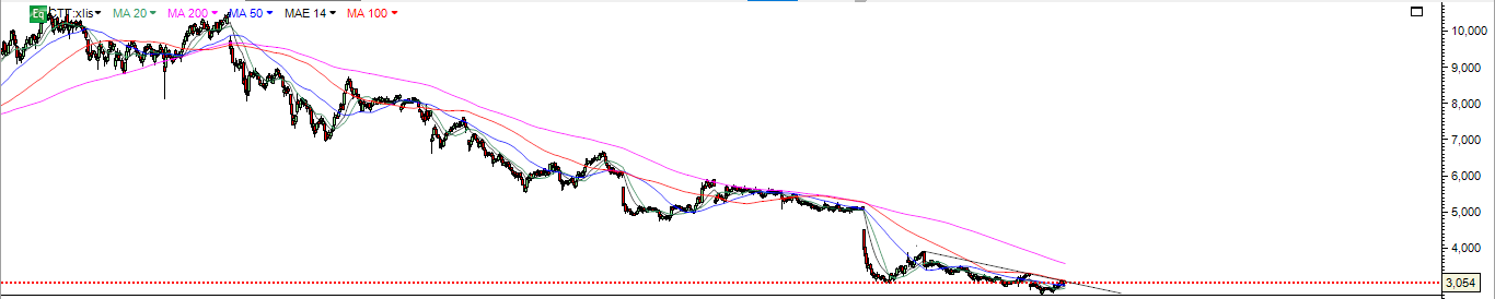 Apesar de neste momento ao nível da AT , não existir nenhum sinal de inversão, veremos o que faz a cotada nos próximos dias .