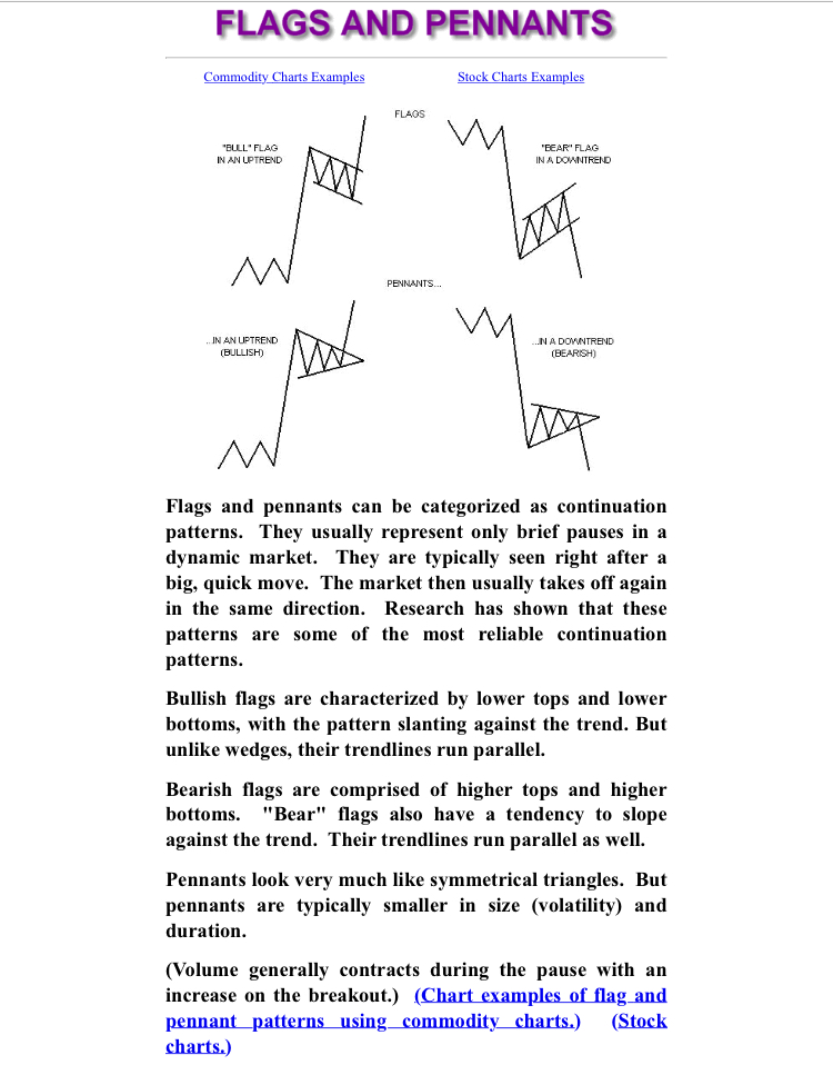 O que postaste é claro: "Flags and pennants can be categorized as continuation patterns". Os próprios desenhos mostram isso.