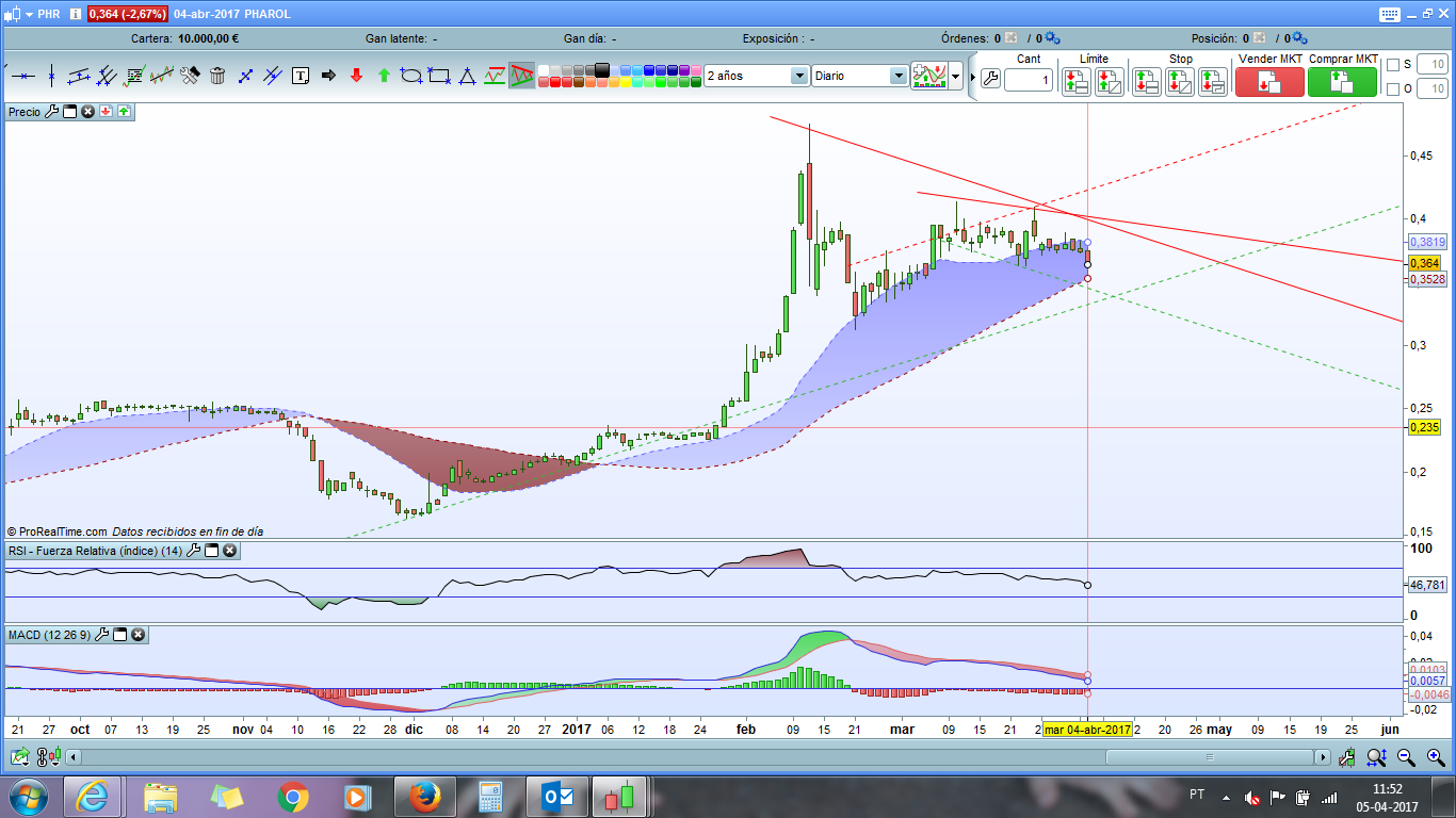 Atendendo ao desempenho desta cotada nos últimos dias, a par da OIBR4, alguém pode-me confirmar se a próxima resistência para esta cotada está nos 0.324 ou pode mesmo chegar facilmente aos 0.23?