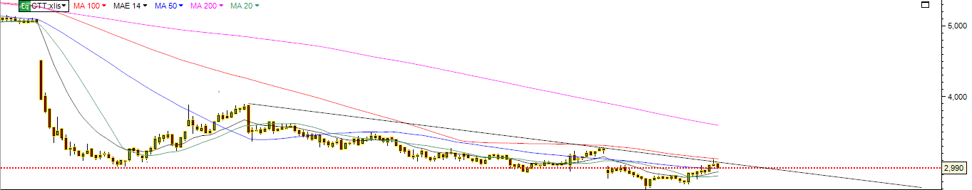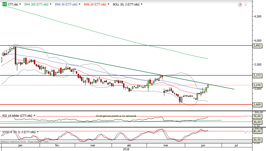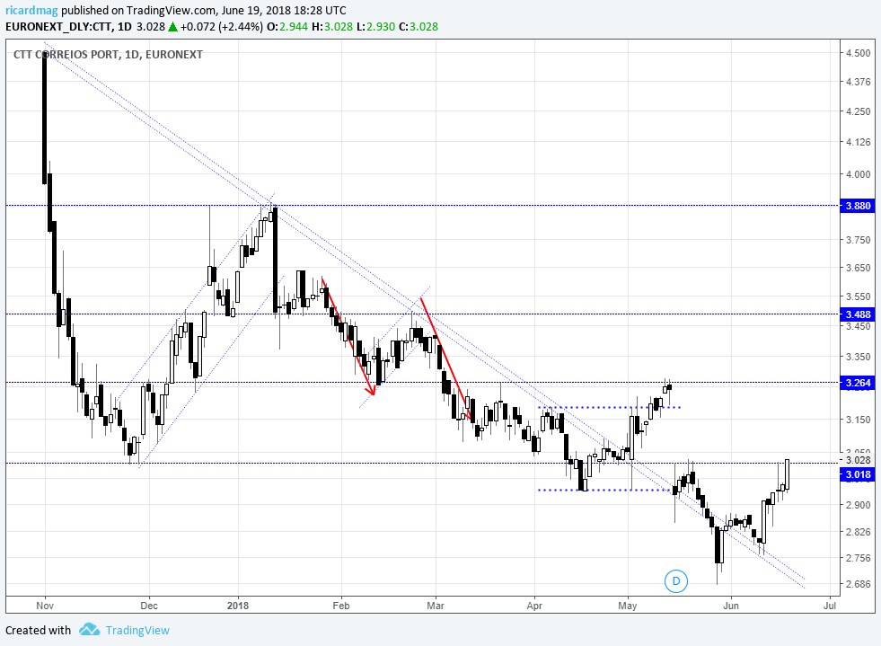 Penso que os CTT estão a enfrentar uma resistência nestes valores, isto é, 3.015-3.030.
