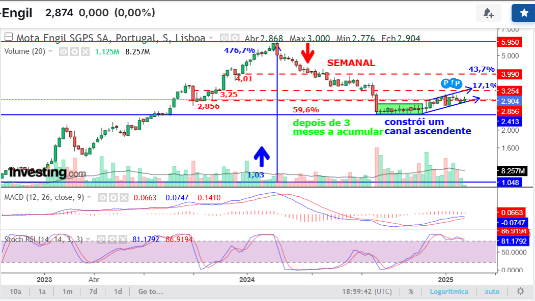 Mas pronto, como o tópico é sobre a Mota, nos meus indicadores a Mota está com comportamento no volume e momentum bastante neutros (a malta costuma chamar-lhe consolidação).