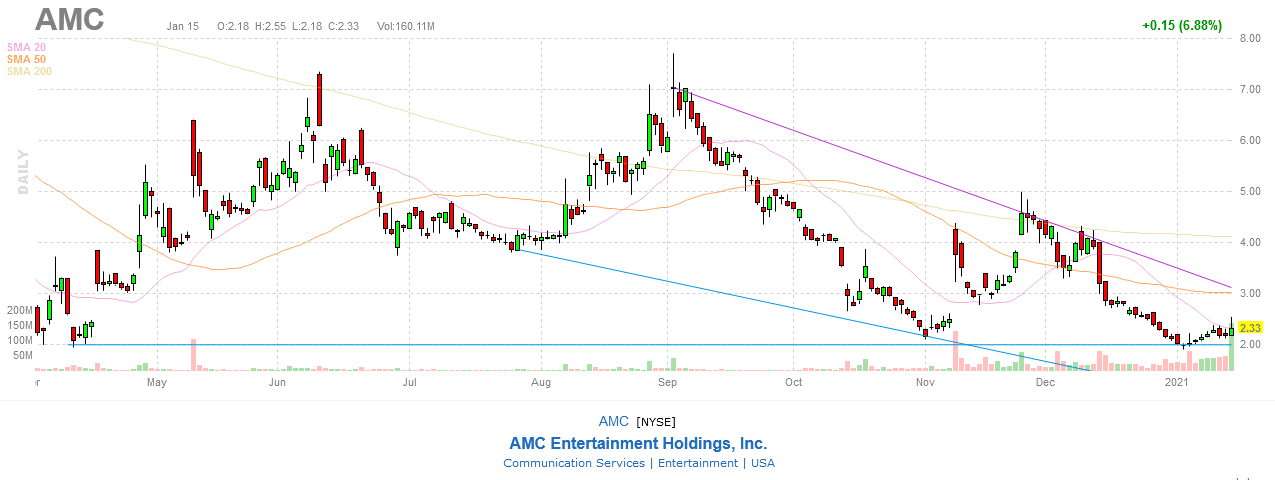 Partilho a AMC, fortemente bear (apresenta algum risco) e que em termos fundamentais tem tudo do que não presta. Uma bosta.