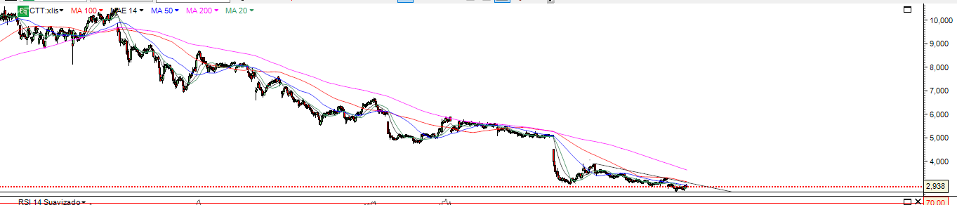 ATé já custa encontrar motivos de interesse para comentar uma cotada que está em queda há 3 ANOS , perto de mínimos , numa tendência terrivel e que só tem dado dissabores a quem tem investido nela no medio prazo desde os 10 euros , mas se há elementos do fórum que fazem questão eu comento.