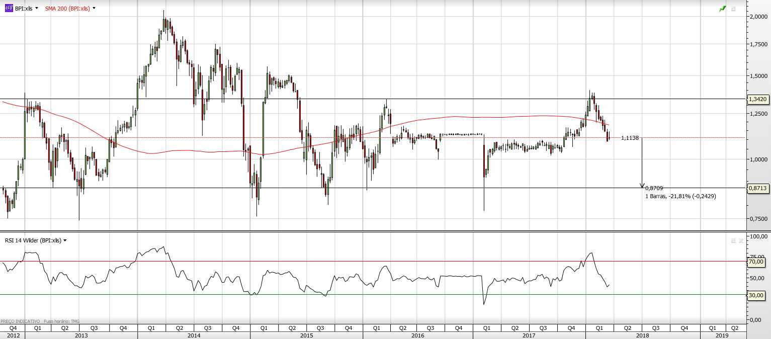 Parece que os lucros do BCP não contagiaram o BPI, que apresenta um padrão contrário ao BCP.