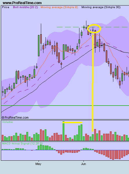 Contudo a nivel pratico, consegues encontrar N exemplos em que o volume nao é tao relevante como dizes (embora em certos casos seja). Fui ao prorealtime e logo na primeira accao que encontrei, repara neste DOJI. é igual ao do bcp, com fecho igual ao da abertura. e repara tambem no volume no dia do DOJI.