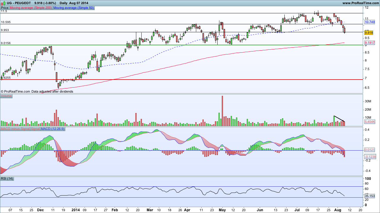 Pessoalmente a única coisa que te posso dizer relativamente ao comportamento da Peugeot é que está a tocar num suporte bastante importante. Só aconselharia uma entrada longa caso visse uma resposta ascendente com força junto a este suporte, mas quem aceitar mais algum risco pode sempre entrar agora com um stop apertado abaixo deste suporte.