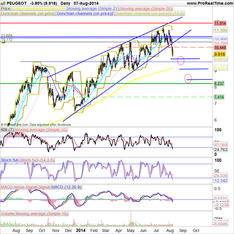 O dia foi realmente bastante vermelho por toda a Europa, mas não estou muito habilitado para relacionar isso com o comportamento da Peugeot. O que posso dizer de minha justiça neste momento é que, até que este suporte aguente estarei dentro. Resistências vejo-as primeiro nos 10,59€ e depois nos 11,50€.