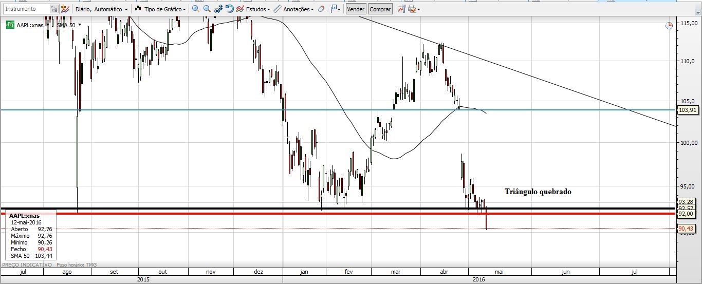 Agora o Triângulo está definitivamente quebrado e a Apple já está a cair 3% e o Nasdaq quase 1% e amanhã é sexta e o semanal do índice corre o risco de ficar bem negro.