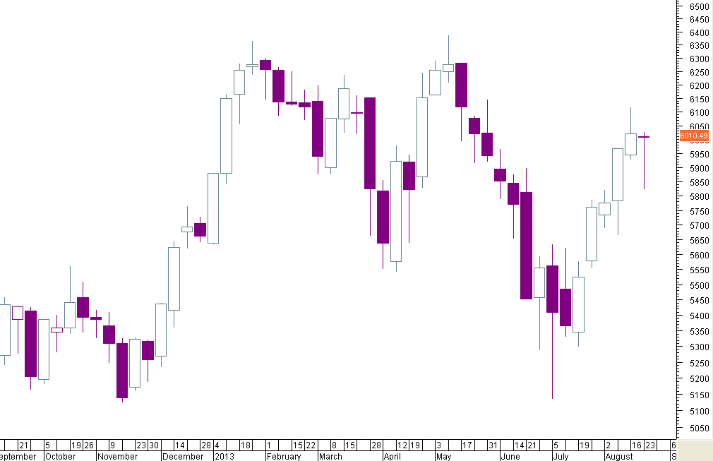 esta semana a vela é clara, ou seja, confirma a anterior