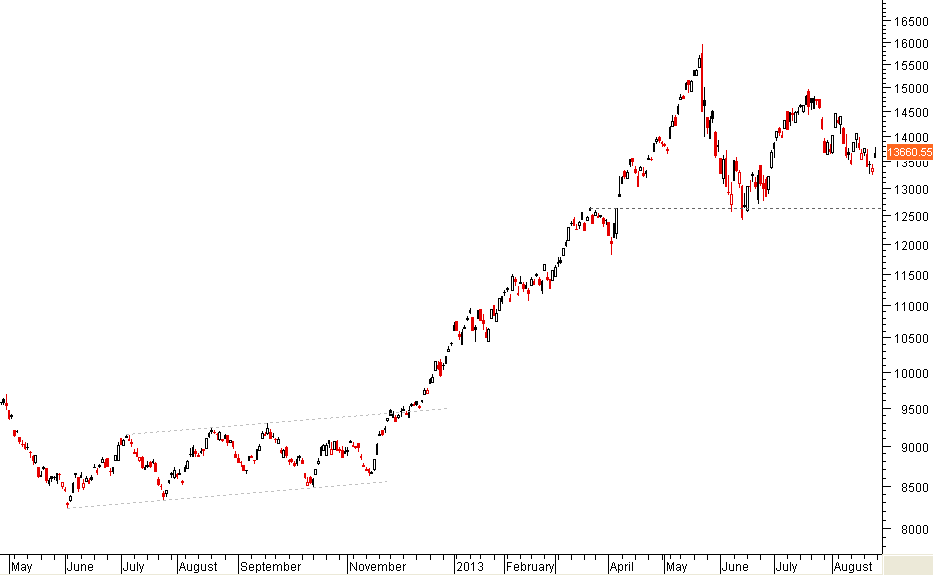 o mais interessante é que se o índice quebrar aquele suporte acima dos 12500, que grande trambolhão em perspectiva, uma vez que a subida anterior, de tão rápida, não criou quaisquer referências técnicas que sustenham as eventuais quedas