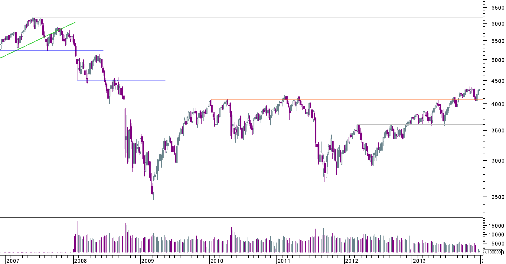 já Charles Dow dizia que uma linha (line, no original] fazia as vezes de uma tendência secundária, o que se pode perfeitamente aplicar ao gráfico do CAC