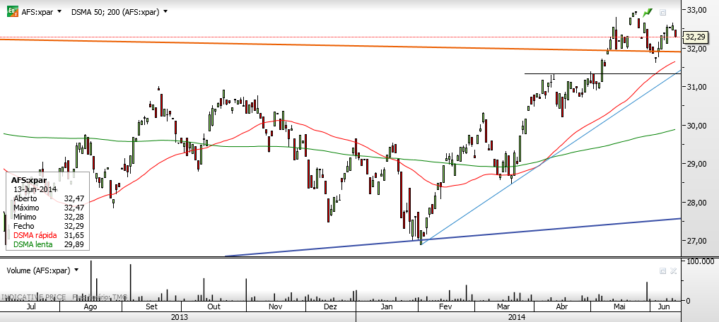 Quanto a possiveis correções, como tu dizes a tendência é de alta e enquanto se mantiver acima dos 31,33 não vejo motivos para grandes preocupações.