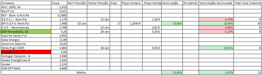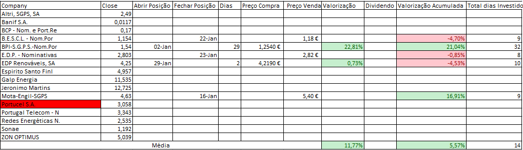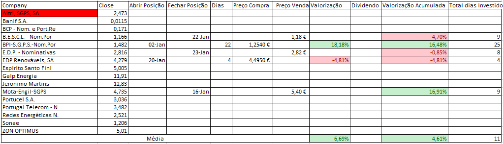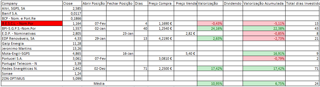 Nota: Sempre que tiver laranja antes do título, é porque dependendo do comportamento da acção no dia seguinte, a posição poderá mudar para "Neutra". Nestes casos irei simular o fecho para perceber se a posição de "Longa" se mantém e só irei adquirir se tal se verificar.