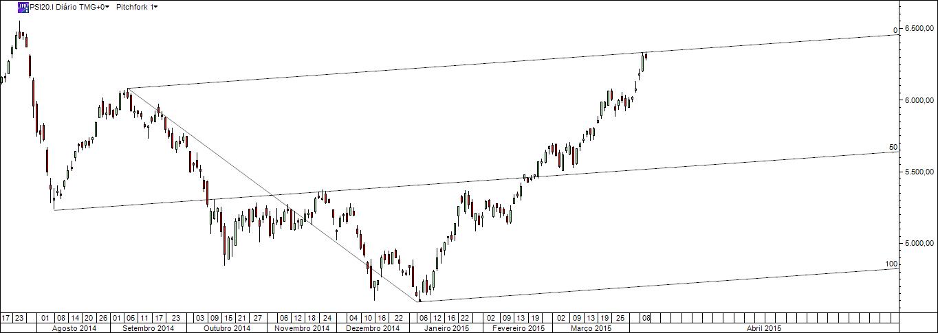 Analisar graficamente a evolução das cotações (no índice - candlesticks, indicadores técnicos, medias móveis, Elliot waves, Fibonacci)
