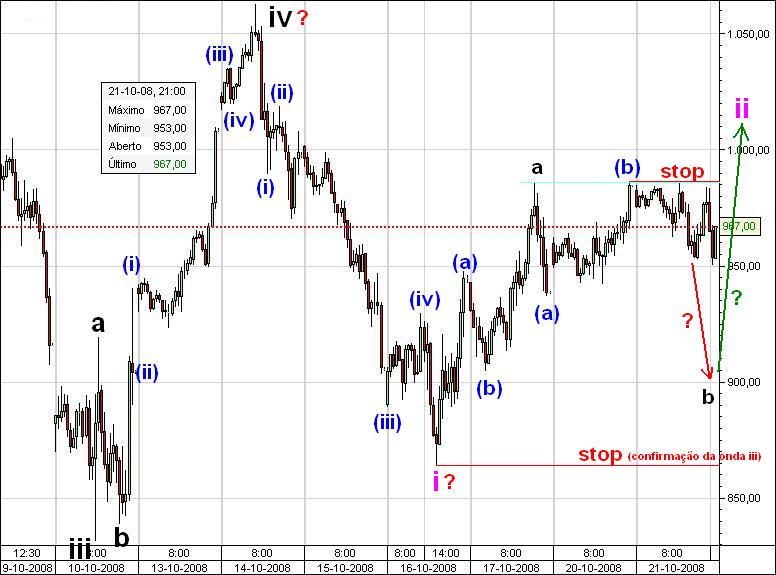 Mantenho a contagem antiga. Por um lado não estou muito convencido que já tenha terminado a onda ii. Poderá sempre ser feita em 3-3-5 mas vamos seguir esta nova onda começada hoje que penso que poderá terminar na zona dos 900 pontos.