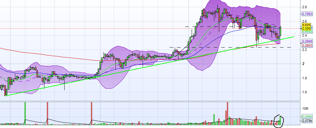 A Rene lá continua o seu percurso ascendente, desta vez com um bom volume. Com o aproximar dos dividendos talvez ela ultrapasse a pequena resistência dos 2,90€. Já agora os gráficos no l'echo em escala logarítmica os preços ficas estranhos, alguém sabe o que se passa?