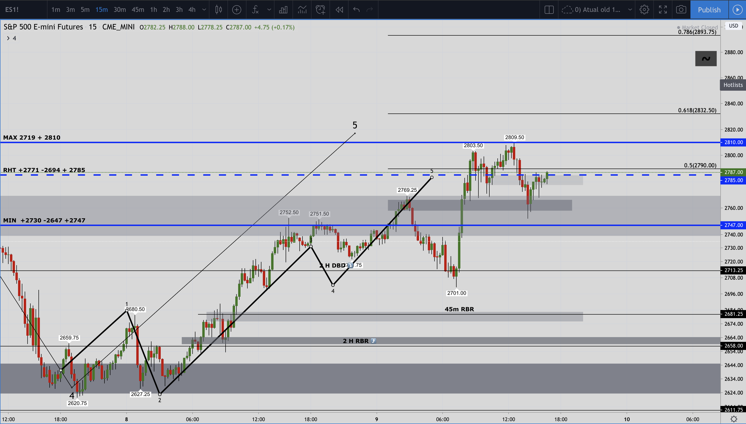Resistencia nos 2810. Se ultrapassado e existindo volume para suporte nos 2803 poderemos ter um movimento para os 2893.