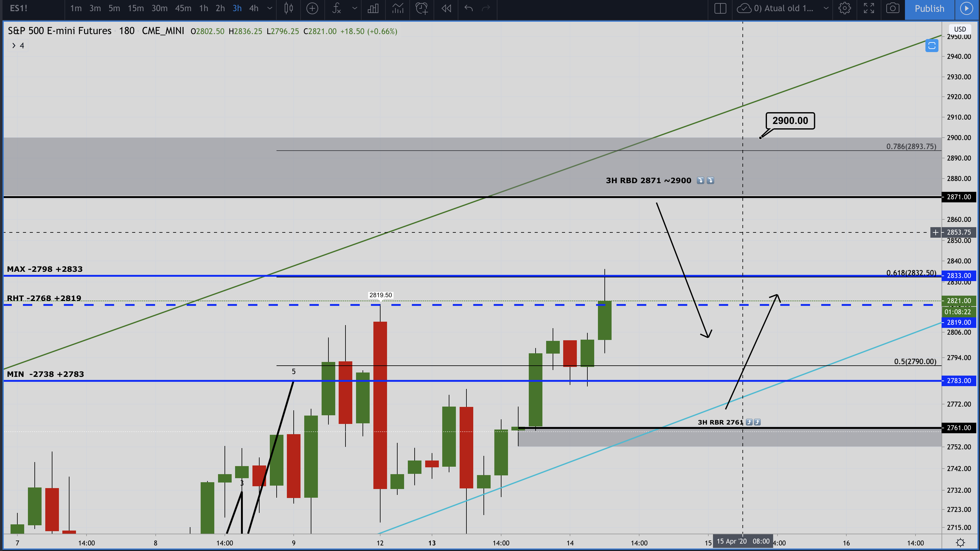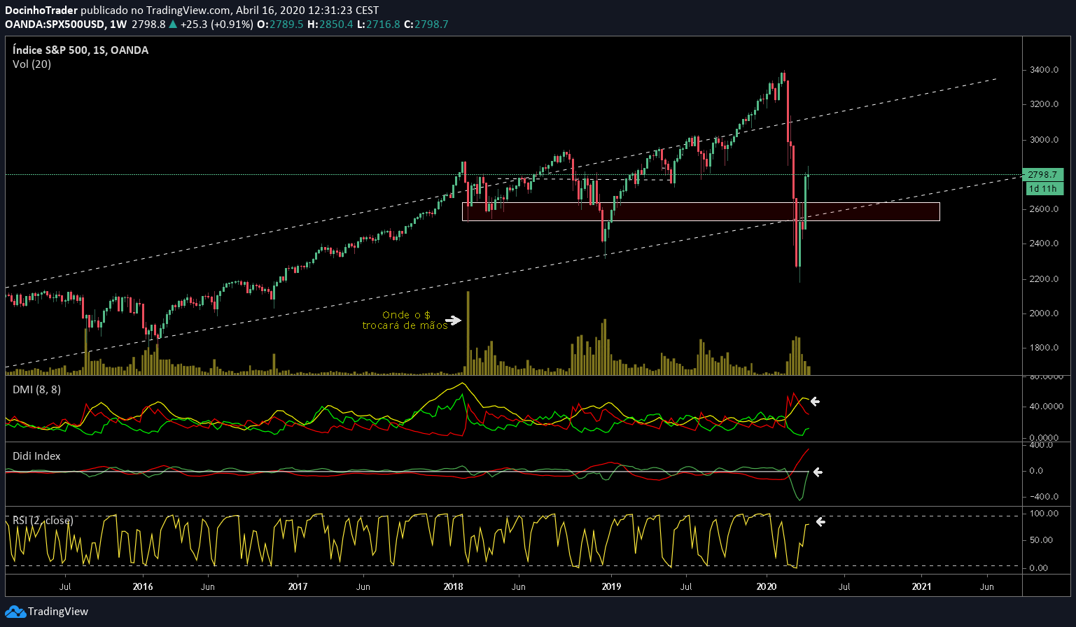 Nota: Eu aqui claramente shorto. Stop 2900, profit 2200, por minha conta e risco, como sempre assim foi.