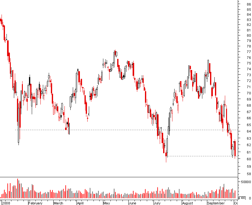 para exemplificar a tua ideia num caso concreto, deixo aqui um gráfico semanal da arcelormittal sobre um suporte nascido em 2006, cuja projecção aritmética levaria de facto à falência