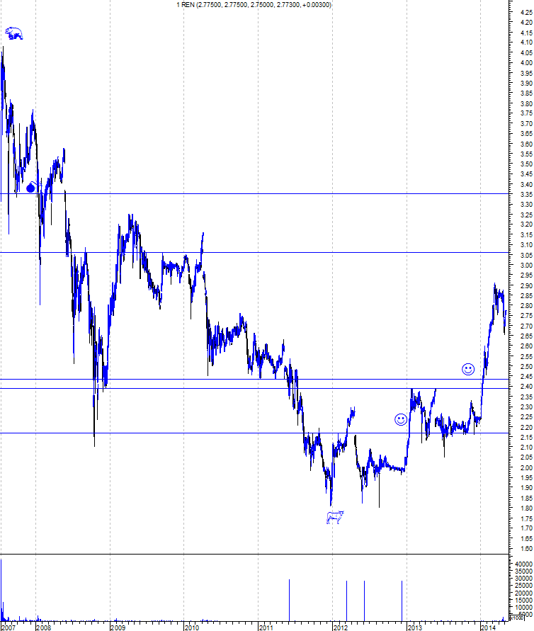 Quanto à REN penso que nos fundamentais tem suporte de chegada um pouco mais acima. Na AT conforme citado pelo Ulisses não há suporte ( mas o mercado se encarregará de os definir).