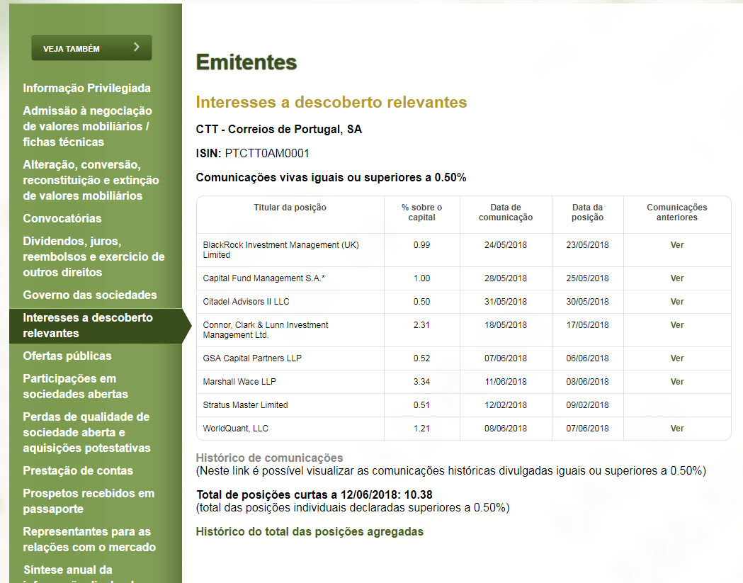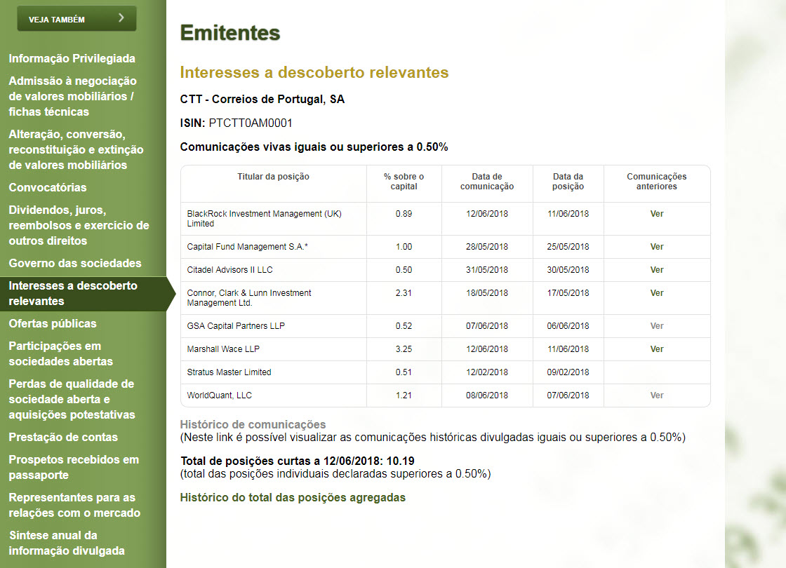 Quem anda a diminuir é a Marshall Wace LLP que detem a maior posição (3,25%).