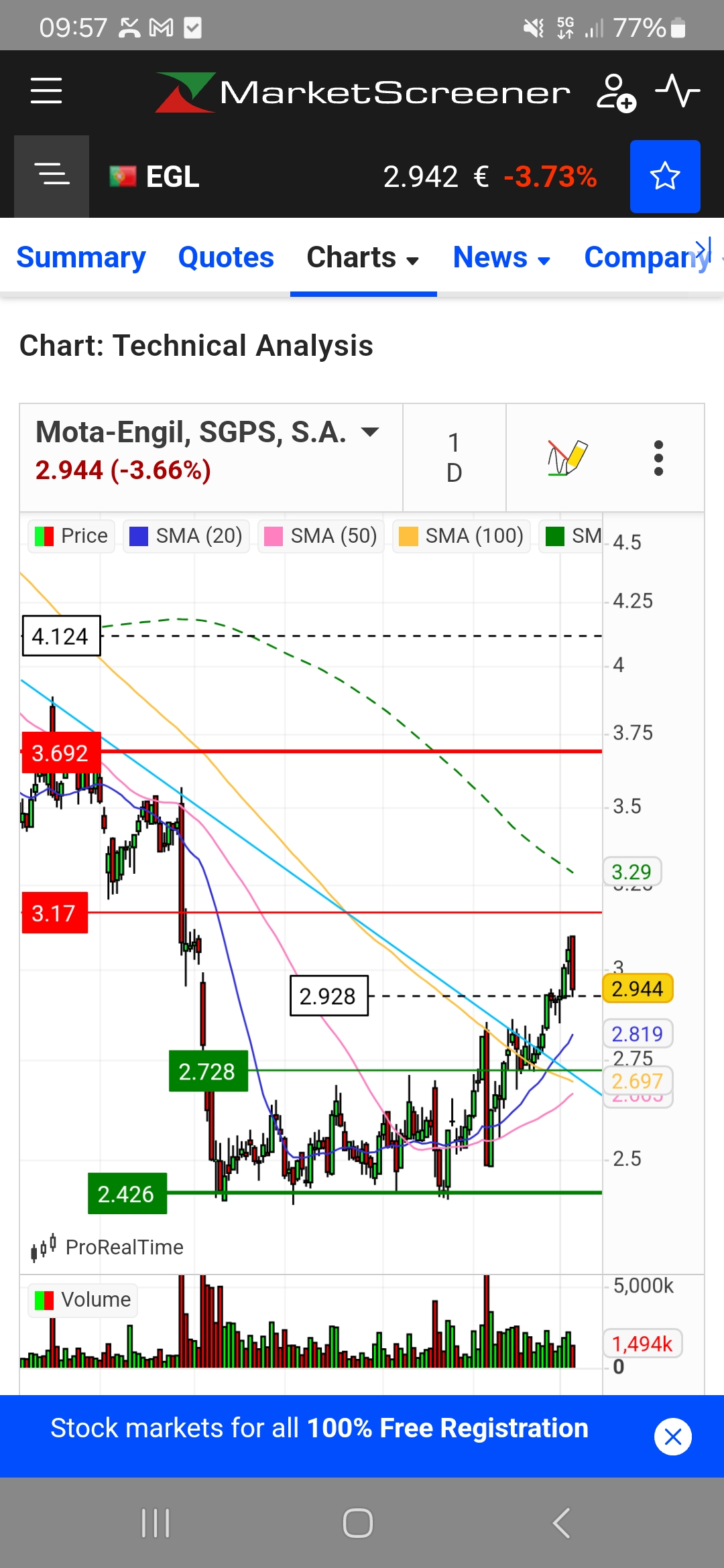 A Mota fechou o gap que tinha nos 3 e pouco, foi até à resistência inclusivamente, uma vinda aos 2,75/2,80 até seria saudável e em nada comprometeria o caminho ascendente de longo prazo.