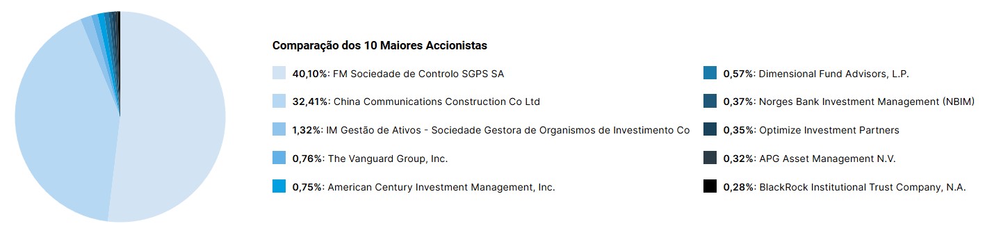 De acordo com a informação de titularidade das ações da Mota Engil, disponibilizado pela DeGiro (que por sua vez refere como fonte da informação a "LSEG Data & Analytics"), a 30/11/2024, tínhamos as seguintes percentagens de titularidade das ações da Mota-Engil: