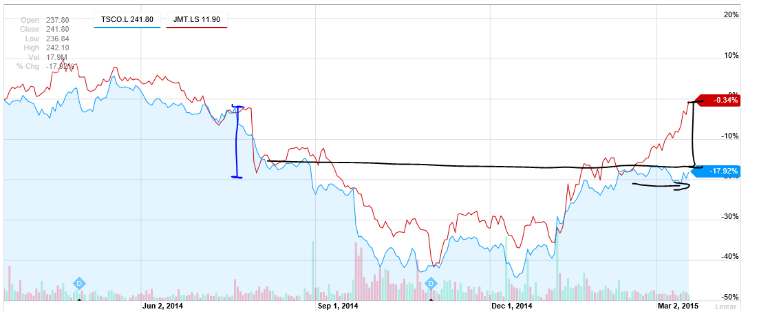Uma diferença de 20% a favor da JMT em 1 ano é um desempenho idêntico à TESCO?