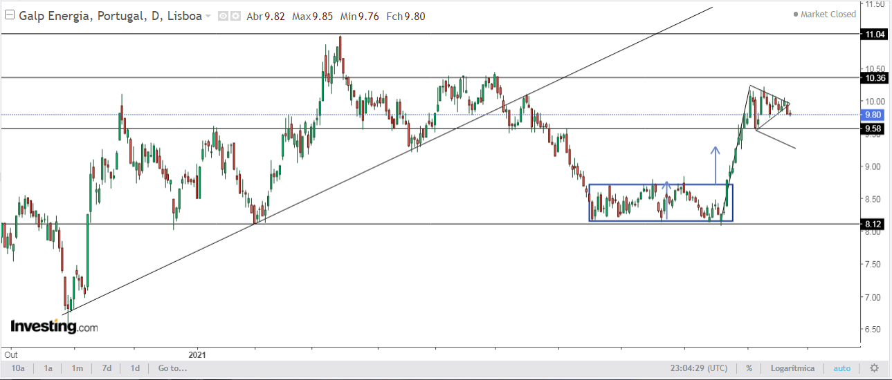 Ou estará a Galp a efectuar um retracção normal face ao último movimento ascendente, que poderá ir ou não até à zona de suporte, para depois voltar novamente às subidas?