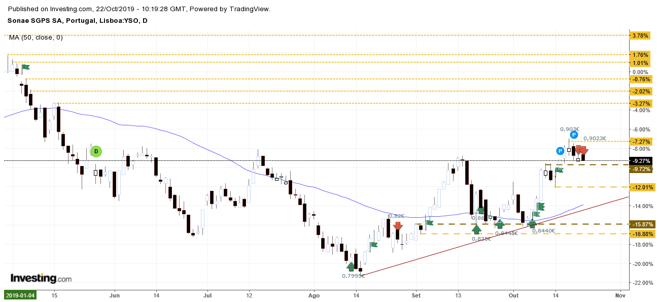 RFPB, mas consideraste que a Sonae quebrou a resistência? Na minha opinião, ainda lhe falta dar esse sinal de força, chegou ali à zona de resistência e travou, como é normal.