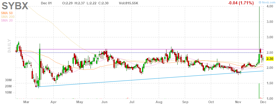 Num dos recentes screeners que fiz, deparei-me com esta SYBX. Gostei do que vi e optei por adquirir algumas SYBX, tendo inclusive reforçado hoje com mais algumas posições. Alerto que esta minha partilha, não se trata de nenhuma recomendação de compra, antes pelo contrário.