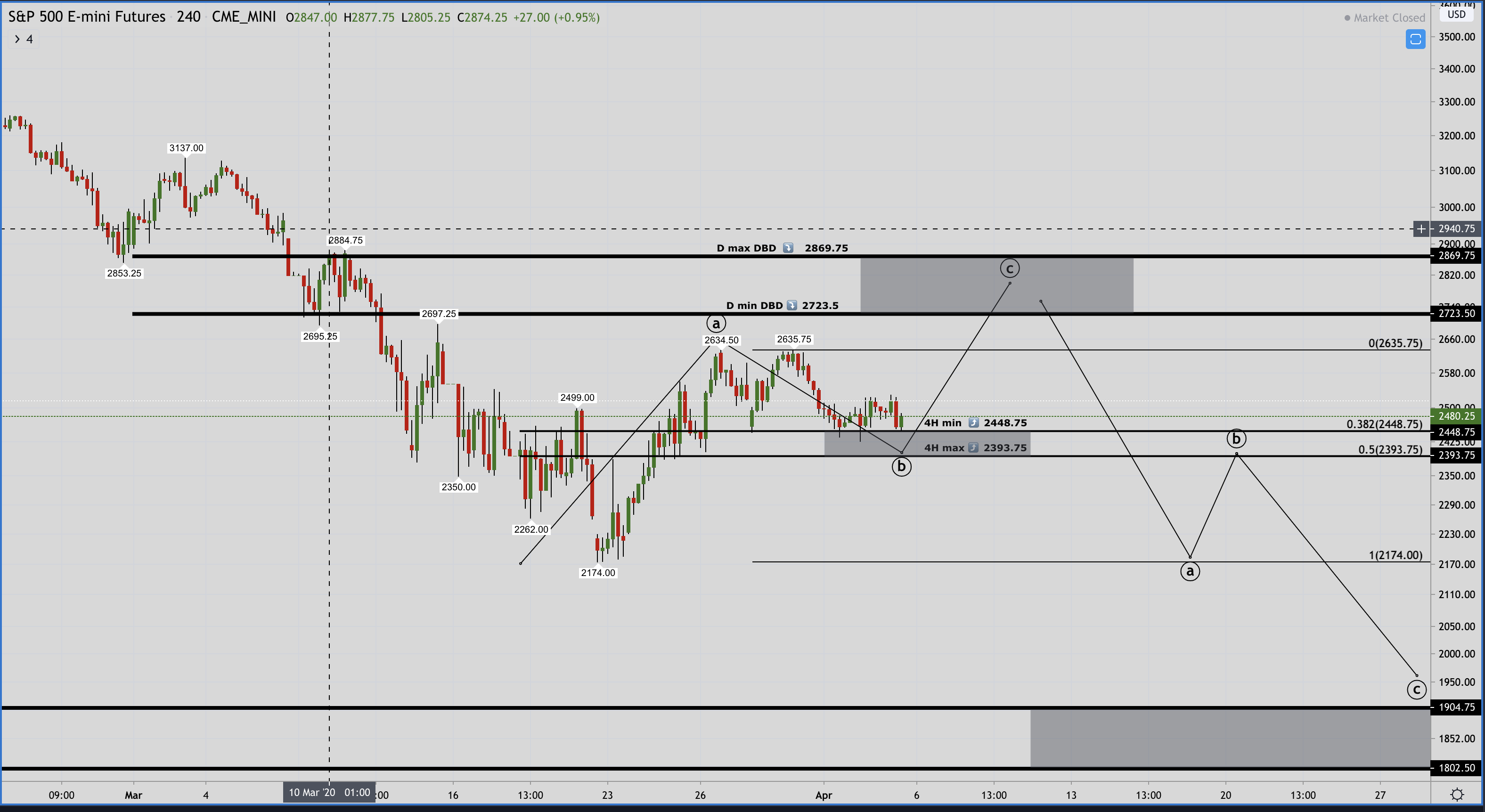 Por enquanto, apenas um rebound em Bear market, mas, no After hours S&P500 já sobe 3,81% para os 2586 pontos (já acima da MMS20). Primeira RF nos 2711.